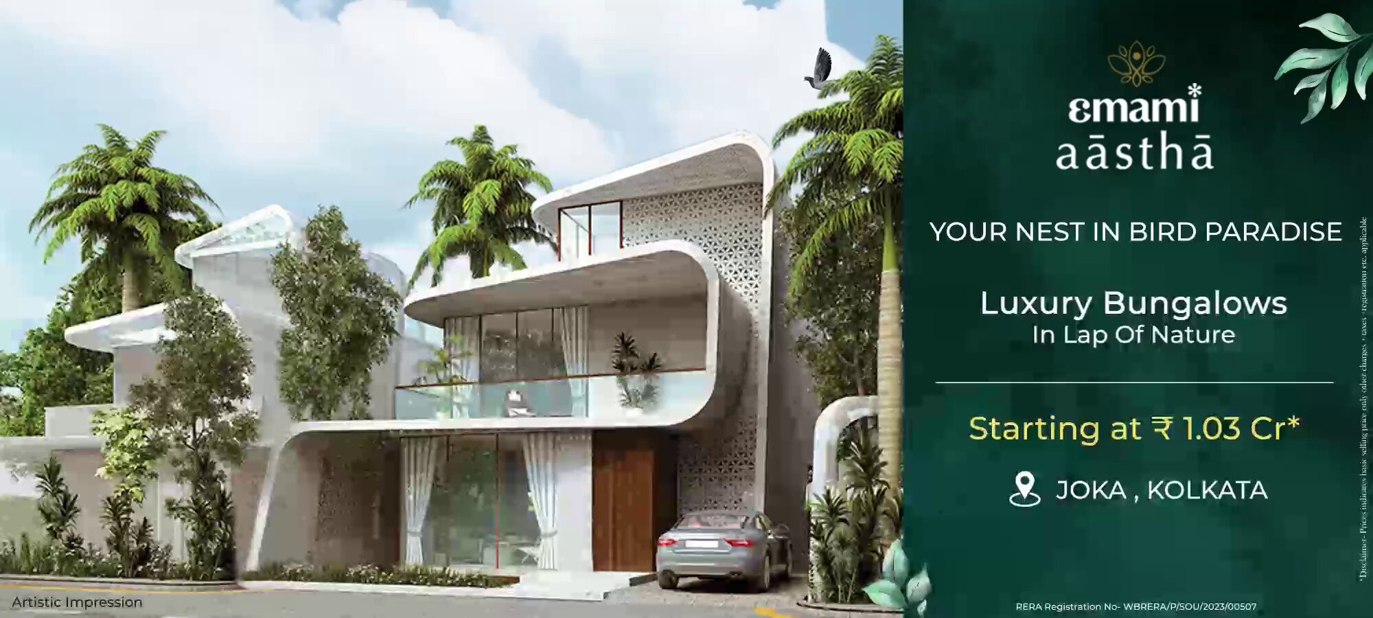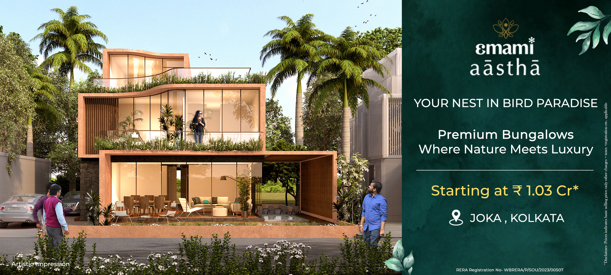 Welcome to Emami Aastha, an enchanting bungalow township spanning around 40 acres, comprising 377 individual bungalows. Tucked away in an urban forest, this idyllic enclave is embraced by verdant surroundings and boasts modern amenities, crafted to perfection for discerning residents. Offering a variety of bungalows tailored to suit diverse family needs, it invites you to uncover the ultimate gift for yourself and your loved ones. Come, explore and find your ideal haven!